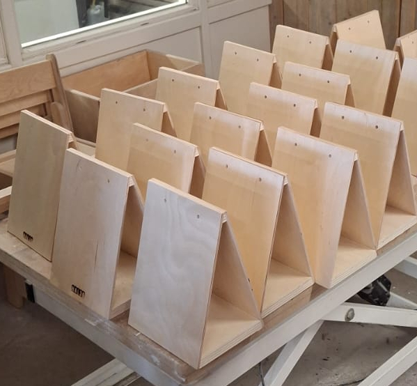 Hier kwam een samenwerking tot stand met HAL36, geleid door coördinerend begeleider Peter. HAL36 werkte eerst aan een prototype en na een aantal aanpassingen en harde werkers hebben ze de perfecte, stevige en ook nog eens mooie houten standaard gemaakt die de kalender rechtop houdt. De gezamenlijke inspanningen hebben geleid tot een prachtige, duurzame standaard die de eigen regie kalender compleet maakte.