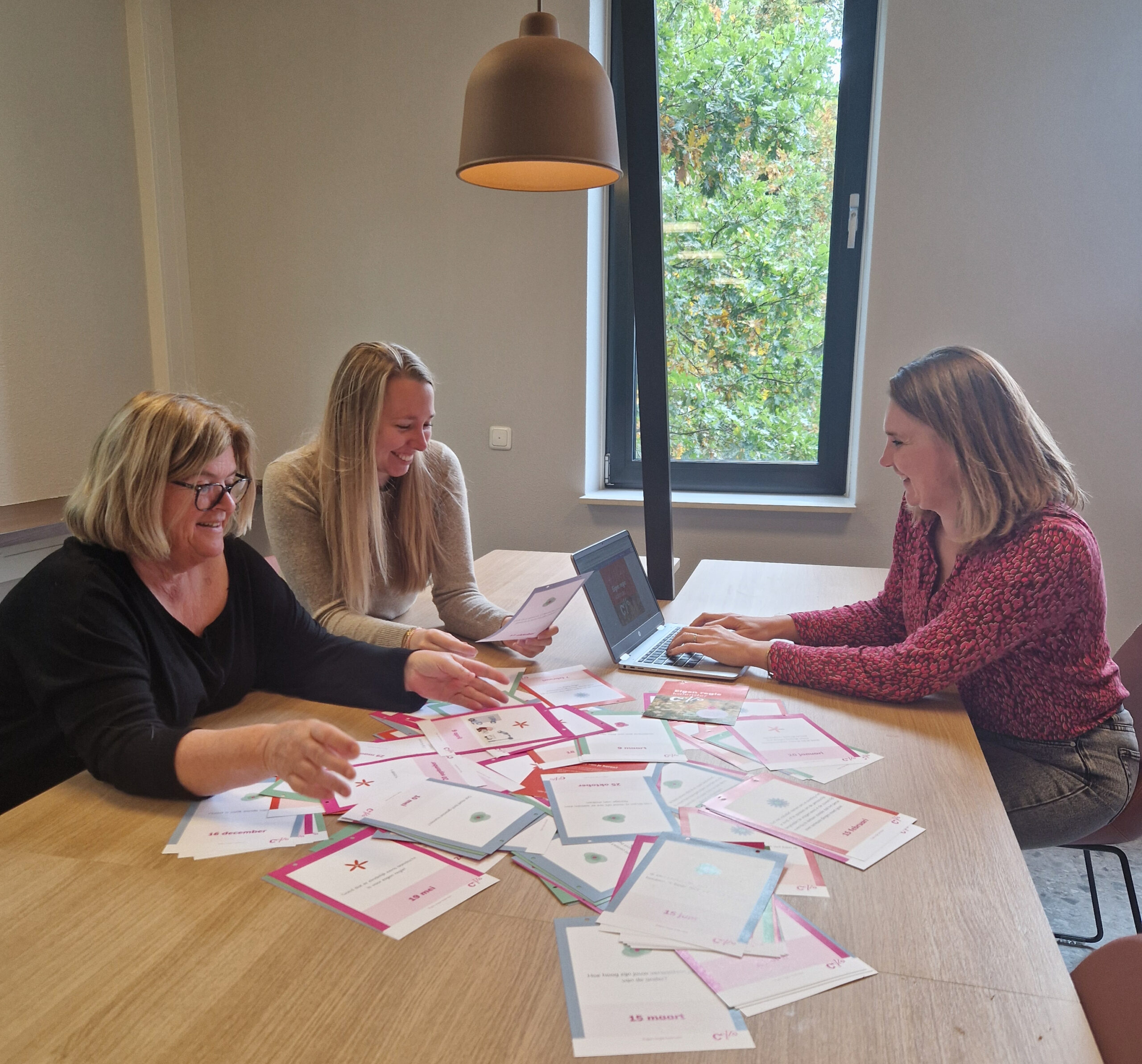 Corianne, Kim en Tanja waren druk met het verzamelen van input, maar ondertussen kon grafisch vormgever Natalie aan de slag. Zij heeft de vormgeving van de kalender gedaan en zorgde ervoor dat het een gezellig Cello-jasje kreeg. Met oog voor detail ontwierp ze bijvoorbeeld de verschillende bloemetjes op elke pagina en de passende icoontjes die op de bladzijden van de feestdagen staan.